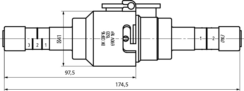 Ограничитель мощности состоит из держателя предохранителя CBF 16 и трубчатого предохранителя GG (22x58 мм).