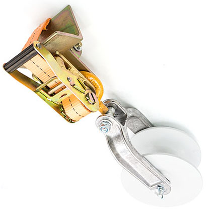 Ролик RT 5 предназначен для анкерных и угловых опор. Арматура и шкив выполнены из облегченного сплава. Вращение роликов — на шариковых подшипниках. Шкив с круглым желобом покрыт защитным слоем синтетической эмали. Блокирующее устройство предотвращает соскакивание пучка проводов с ролика. Ролик RT 5 крепится прямо на опорах при помощи ремня.