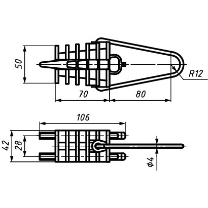 Анкерный клиновой зажим DN 126 предназначен для концевого крепления проводов ответвления сечением 2x16-4x35 мм2 от магистрали к вводам.
